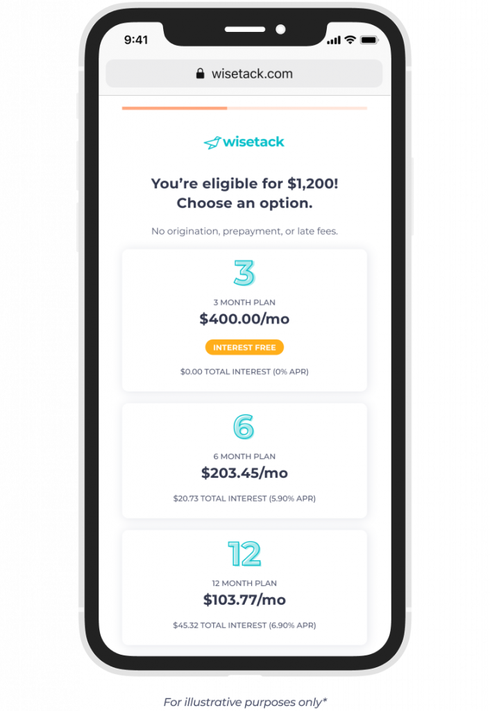 *All financing is subject to credit approval. Your terms may vary. Payment options through Wisetack are provided by our lending partners. For example, a $1,200 purchase could cost $104.89 a month for 12 months, based on an 8.9% APR, or $400 a month for 3 months, based on a 0% APR. Offers range from 0-35.9% APR based on creditworthiness. State interest rate caps may apply. No other financing charges or participation fees. See additional terms at https://wisetack.com/faqs.